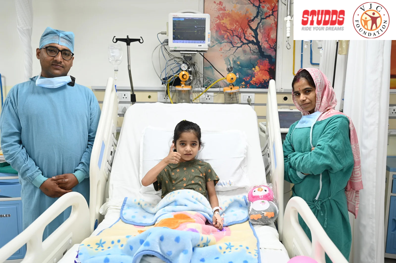 Vidya Jagat Cancer Foundation, in association with Studds, proudly extended its compassionate support towards the life-saving treatment of baby Kanishka, a brave 6-year-old girl diagnosed with a rare and complex congenital heart condition. Her medical case was particularly critical, involving Congenitally Corrected Transposition of the Great Arteries (cTGA) along with Ventricular Septal Defect (VSD) and Pulmonary Atresia—conditions that required immediate and highly specialized pediatric cardiac intervention.